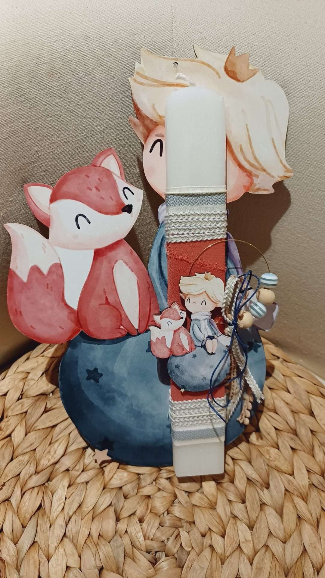 Άρωματικό κερι με ξύλινη φιγούρα κ ξύλινο καδράκι Μίκρο Πρίγκιπα.